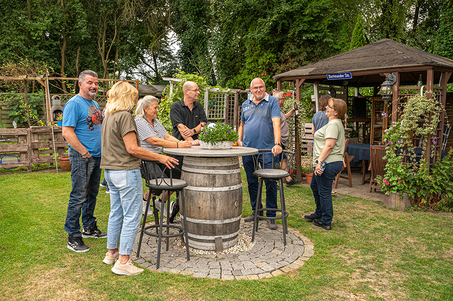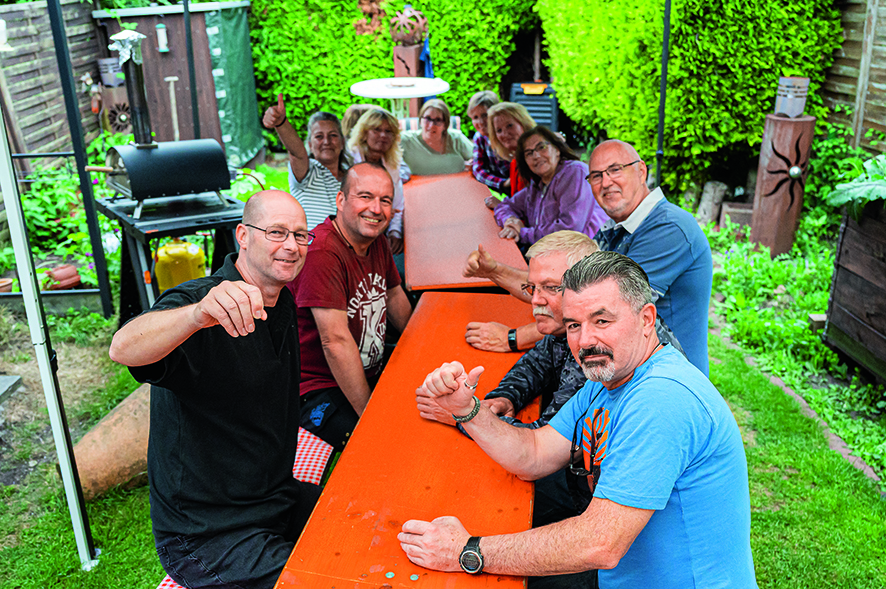 „Mit den Gärten hat auch alles angefangen“, erzählt Mark Bethke. „Als uns der Vorgänger von Vonovia die Gärten zugeteilt hat, haben wir gemeinsam Hand angelegt. Da hat es sich ganz von selbst ergeben, abends zusammenzusitzen und zu grillen.“ Auch feiern und essen gehörte seitdem immer dazu.