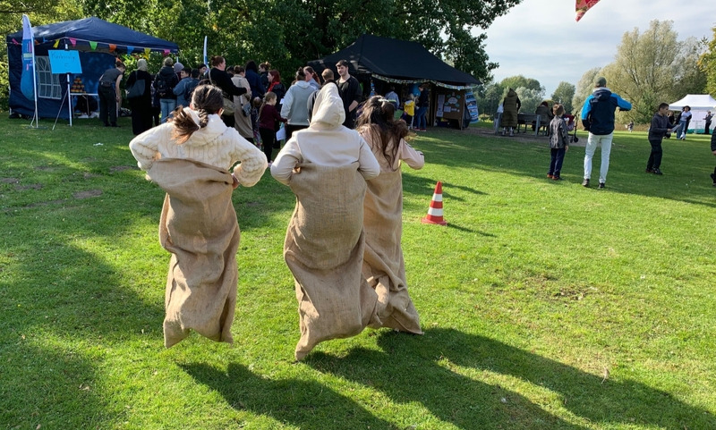 Auch Vonovia beteiligte sich erneut aktiv am Fest: Der Stand, betreut vom Nachbarschaftstreff „palette 6“, lockte die Kinder mit Sackhüpfen – ein Klassiker, der für viel Gelächter sorgte. Zudem gehörten die beliebten Vonovia Spielblöcke zu den Gewinnen der Kinder-Rallye und trugen so zum familienfreundlichen Charakter des Jubiläumsfestes bei.