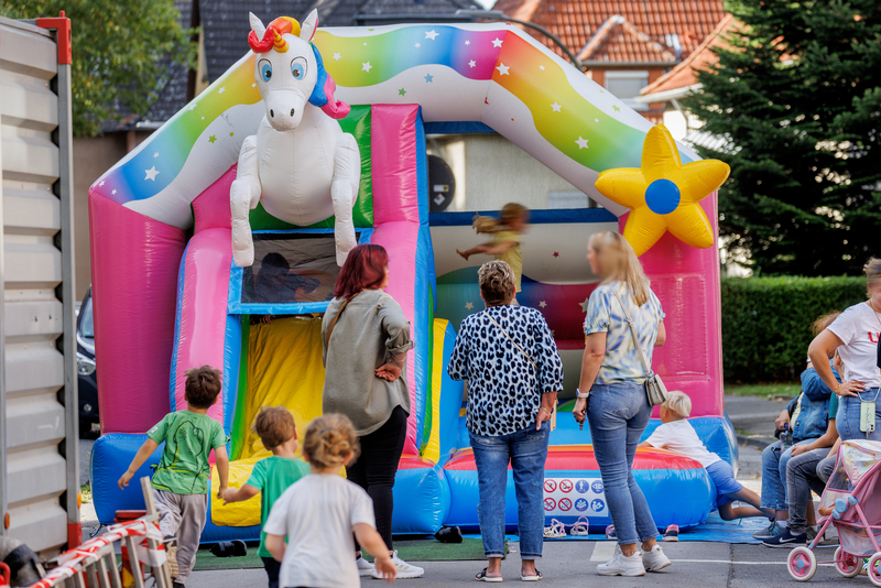 Während die jüngsten Gäste am Vonovia Stand kreativ werden konnten, sorgte eine Hüpfburg im fröhlichen Einhorn-Design für Spaß und Bewegung. Zusätzlich lockte eine Tombola mit attraktiven Preisen die Anwohnerinnen und Anwohner aus ihren Häusern. Auch für das leibliche Wohl war bestens gesorgt: Die AWO verwöhnte die Gäste mit frisch gebackenen Kuchen, duftenden Waffeln und aromatischem Kaffee. Ein Grillstand und ein Getränkewagen rundeten das kulinarische Angebot ab.