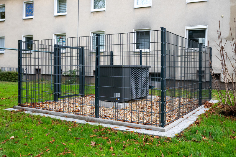 Die neuen Anlagen entstehen zwischen den Gebäuden auf den Grünflächen und werden mit einem Zaun umgeben, sodass sie sich unauffällig in das Gesamtbild der Wohnanlage einfügen. Jede der sieben Wärmepumpen besitzt eine Leistung von zwölf Kilowatt. Damit kann jedes Gerät acht Wohneinheiten mit einer Gesamtwohnfläche von rund 485 Quadratmetern mit Wärme versorgen.