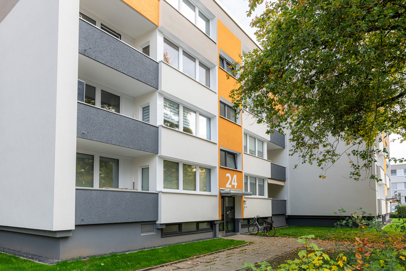 Durch die Hochbaumodernisierung, die Vonovia von März 2024 bis Juni 2025 durchführte, konnten die Energieeffizienz und der Wohnkomfort deutlich verbessert werden. „Durch die Modernisierung ist aus einer alten Plattensiedlung der 70er Jahre ein modernes, helles und freundliches Quartier geworden“, erklärt Maike Holtrop, Regionalleiterin bei Vonovia.