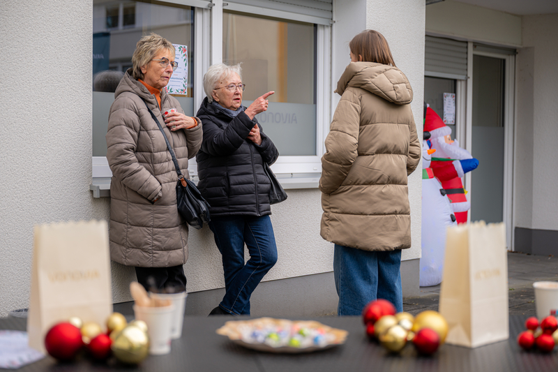 In Huckarde öffnete das Vonovia Büro an der Insterburgerstraße seine Türen für eine gemeinsame Aktion mit dem Seniorenbüro. In einer kleinen, gemütlichen Runde kamen einige Nachbarinnen und Nachbarn zu Besuch, um bei Kaffee und Plätzchen miteinander zu plaudern. Sie erzählten, wie sie in diesem Jahr Weihnachten feiern möchten, erinnerten sich an frühere Jahre und nutzten die Gelegenheit für einen entspannten Plausch bei besinnlicher Stimmung.