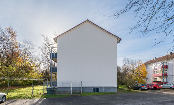 Schöner Wohnen in Emmendingen: Die Bewohnerinnen und Bewohner im Gutshof 21 können sich über eine moderne und helle Fassade freuen. Vonovia hat das Wohngebäude aus dem Baujahr 1962 in Terrakotta- und Weißtönen gestrichen. Neben der optischen Auffrischung sorgt der Anstrich für einen besseren Schutz der Fassade: Spezielle Beschichtungen mindern das Risiko von Pilz- und Algenbefall und tragen zur langfristigen Werterhaltung bei. Investiert hat Vonovia rund 21.000 Euro. Eine Mieterhöhung ist mit dem Fassadenanstrich nicht verbunden.