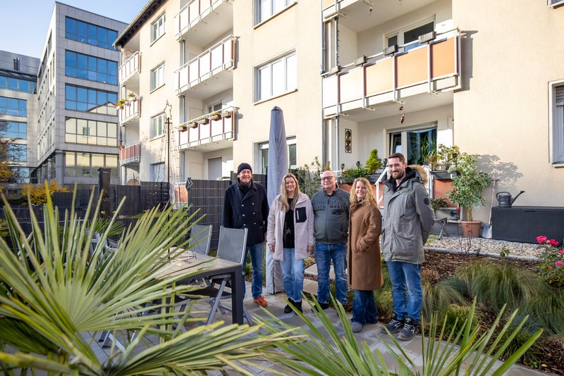Als Vonovia 2023 eine Umfrage unter den Erdgeschossmieterinnen und -mietern an der Uerdingerstraße zu möglichen Gartenausbauten stellte, war Oliver Schulze einer der ersten, der Interesse bekundete. Einige Bauschritte später war es im Sommer 2025 so weit: Mit einer eingebauten Tür in der Balkonveranda gelangt der 54-Jährige nun über wenige Stufen in seinen eigenen Garten. Für den Vertriebsleiter, leidenschaftlichen Fortuna‑Fan und Tierfreund, ist der Garten längst mehr als nur ein Hobby – es ist sein persönlicher Rückzugsort.