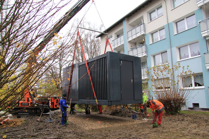 Zum Einsatz kommt dabei ein System, das den Heizungstausch im Bestand vereinfacht: EnerCubes sind vorgefertigte, gebäudeexterne Wärmepumpen-Heizzentralen. In einem Modul sind Wärmepumpe, Warmwasserbereitung und weitere zentrale Komponenten gebündelt, die sonst größtenteils im Heizungskeller untergebracht sind.