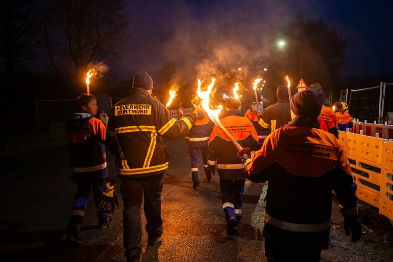 Die Kinder aus dem Jugendzentrum Smile zeigten bei der traditionellen Flammenshow am Schulzentrum spektakuläre Kunststücke der Jonglage und des Feuerspuckens. Diese hatten sie im Vorfeld während eines Workshops mit dem Feuerpädagogik e. V. einstudiert. Danach machte sich ein Teil der Zuschauerinnen und Zuschauer gemeinsam mit weiteren Anwohnenden auf zu einem Spaziergang mit Wachsfackeln und Löschausrüstung. Als kleine Erinnerungsstücke verteilte Vonovia außerdem Herzreflektoren an die Gäste. Unterwegs stand nicht nur das Staunen über die Lichter im Vordergrund, sondern vor allem der Austausch: Nachbarinnen und Nachbarn lernten sich kennen, kamen ins Gespräch und verbrachten Zeit miteinander – ganz unkompliziert und nahbar.