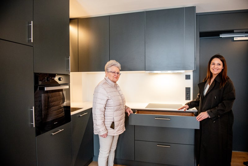 Robert Stellmach, Regionalbereichsleitung Bayern bei Vonovia: „Viele Akteure in Immobilienwirtschaft und Politik sprechen über schnelleres Bauen. Wir beweisen in Kaufbeuren, dass sich rasche Bauweise und hohe Ausstattungsqualität nicht ausschließen. Alle neuen Wohnungen im Quartier ‚Am Flugfeld‘ verfügen über Parkettböden in den Wohnbereichen und sind teilmöbliert mit hochwertigen Schreinerküchen ausgestattet.“