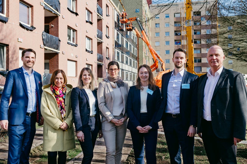 Zum Auftakt der Fassadenmontage hatten Vonovia, die Deutsche Energie-Agentur (dena), die Klimaschutzagentur Region Hannover sowie die Projektpartner ELK TECH und Vestaxx zu einem Baustellenrundgang eingeladen. Neben Vertreterinnen und Vertretern aus Politik und Fachwelt waren auch regionale Medien vor Ort, um sich ein Bild von der innovativen Bauweise zu machen.