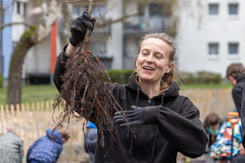 Bei den Pflanzaktionen wurden Bäume, Sträucher und weitere Pflanzen gesetzt. So entstanden auf bislang als Wiese genutzten Flächen Schritt für Schritt zwei Tiny Forests. Dabei handelt es sich um kompakte Wäldchen mit heimischen Arten, die auf engem Raum neue Lebensräume schaffen. Die beiden Flächen sind jeweils rund 300 Quadratmeter groß. Sie werten das Wohnumfeld langfristig auf und tragen dazu bei, das Quartier besser an Hitze und Trockenheit anzupassen.
