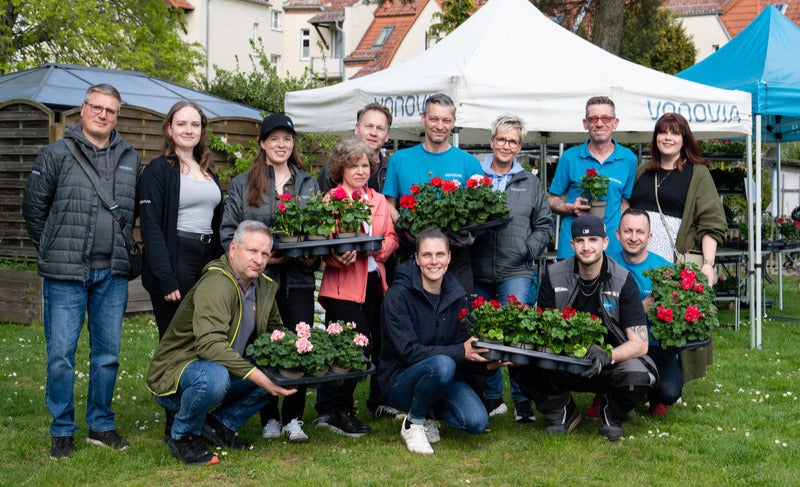 Gleich in mehreren Leipziger Quartieren stehen insgesamt über 1300 farbenfrohe üppig blühende Geranien bereit – sowohl hängend für Balkonkästen als auch stehend für Kübel. Ergänzt wird die Aktion durch die Möglichkeit, die Pflanzen gemeinsam mit Vonovia Mitarbeitenden direkt vor Ort einzutopfen. Sie verteilen Blumenerde, geben Tipps zur Pflanzenpflege und kommen mit den Mieterinnen und Mietern ins Gespräch.